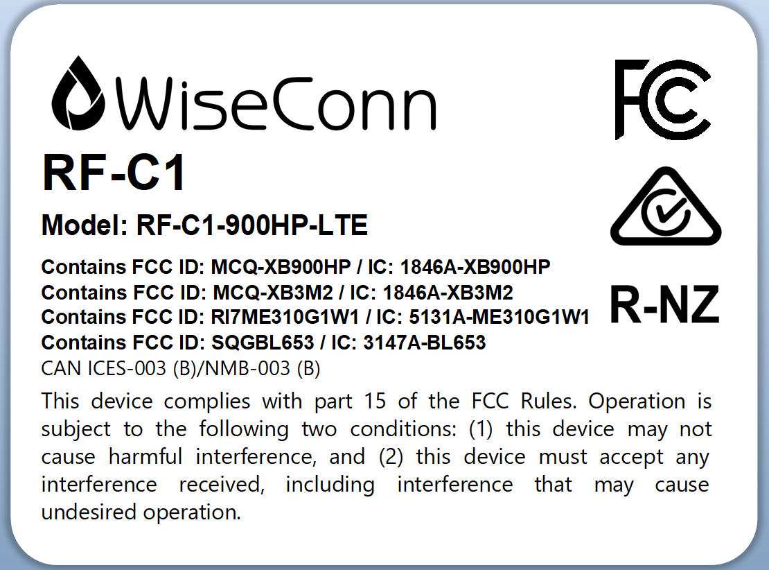 | Model Number(s) | RF-C1-900HP RF-C1-900HP-SCR RF-C1-900HP-LTE RF-C1-900HP-LTE-SCR RF-C1-900HP-CAT1-NL RF-C1-900HP-CAT1-NL-SCR RF-C1-LTE RF-C1-LTE-SCR RF-C1-LITE-900HP RF-C1-LITE-900HP-LTE RF-C1-LITE-900HP-CAT1-NL RF-C1-LITE-LTE RF-C1-LITE-CAT1-NL |